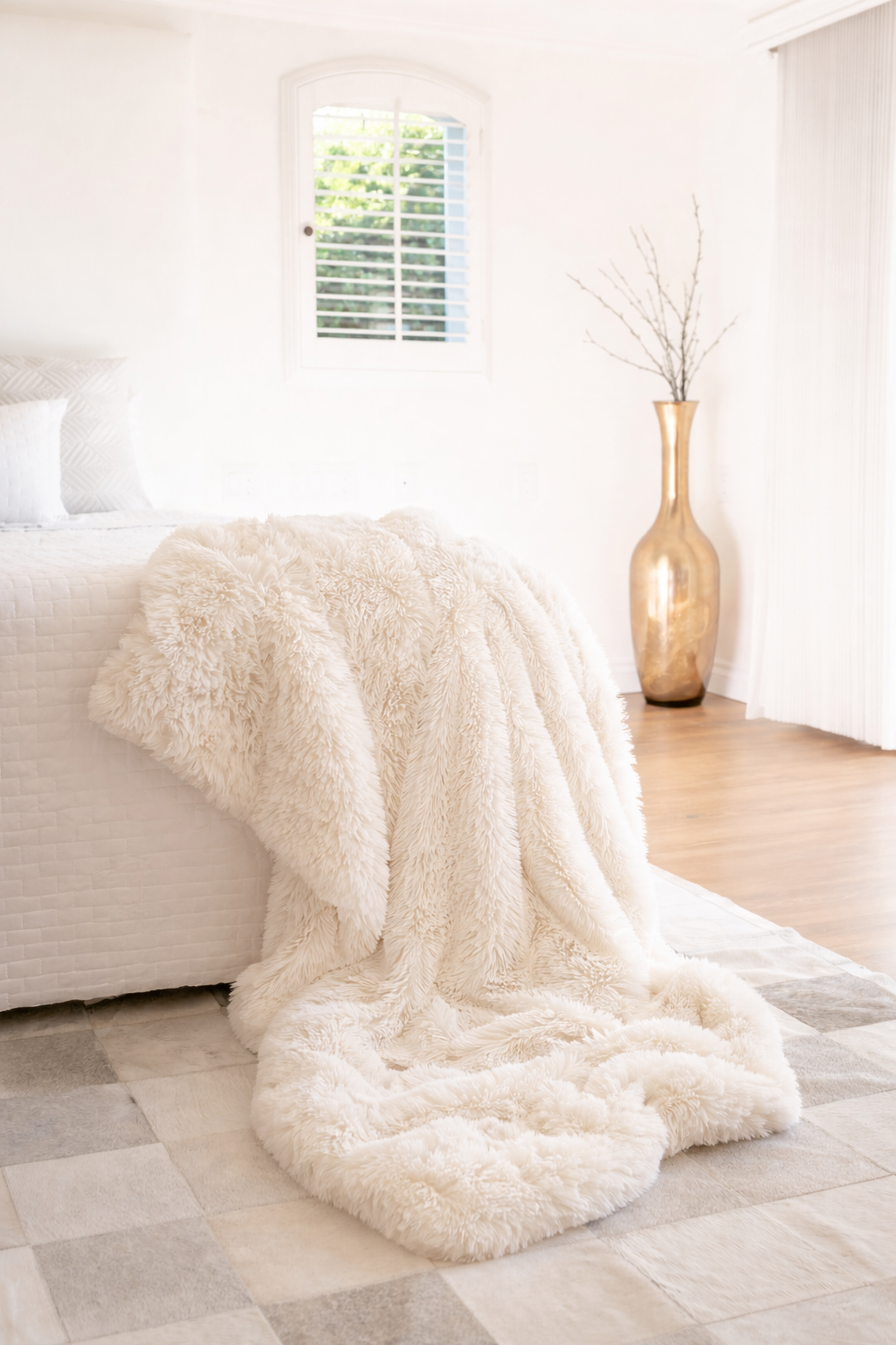 Introducing Palm Springs Plush in Rosewater, a luxurious and vibrant addition to any room. Named after the iconic desert oasis, this stunning high-pile blanket embodies the glamour and sophistication of old-school Palm Springs. The gorgeous pink hue is reminiscent of a sunset over the valley, evoking feelings of warmth and relaxation.