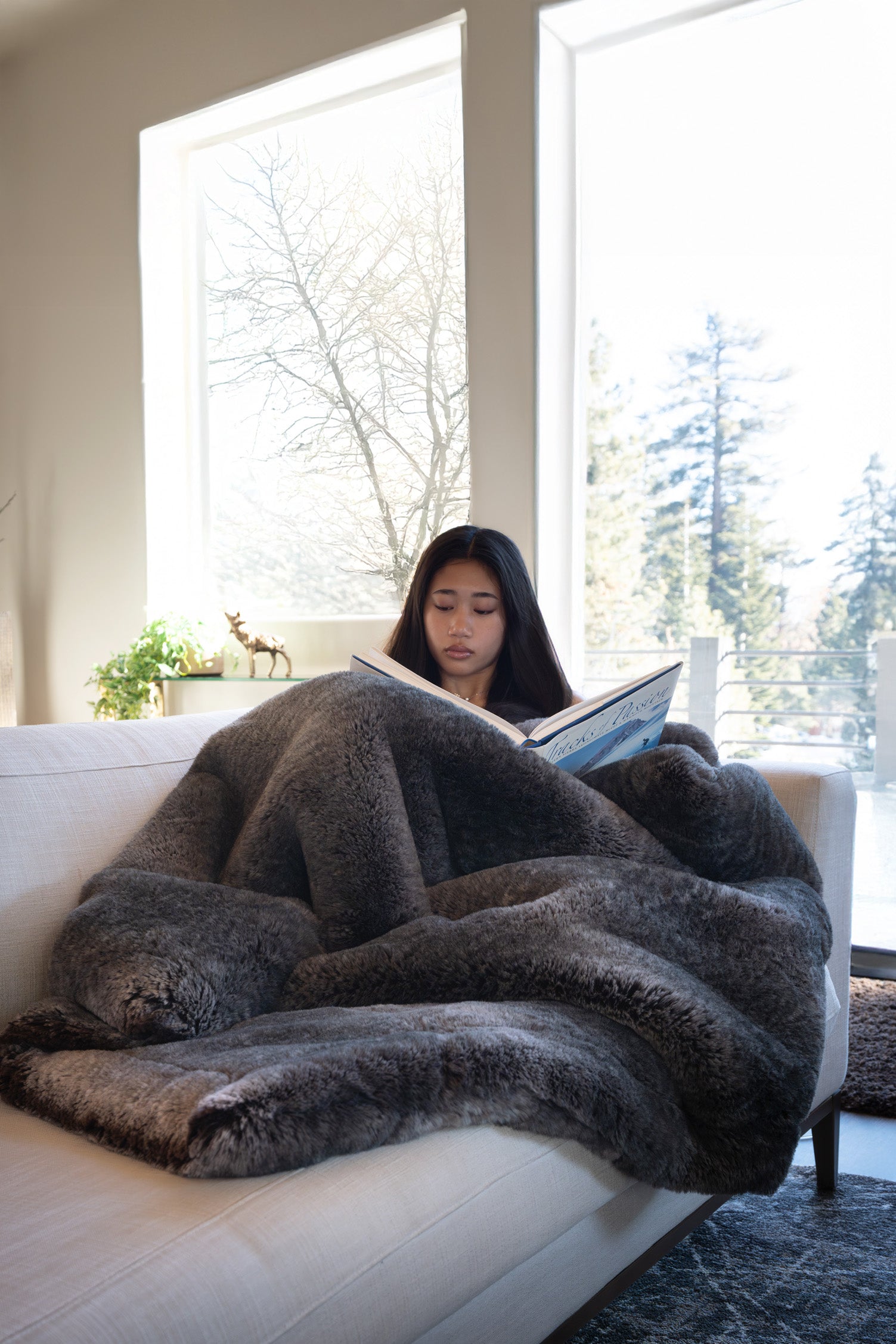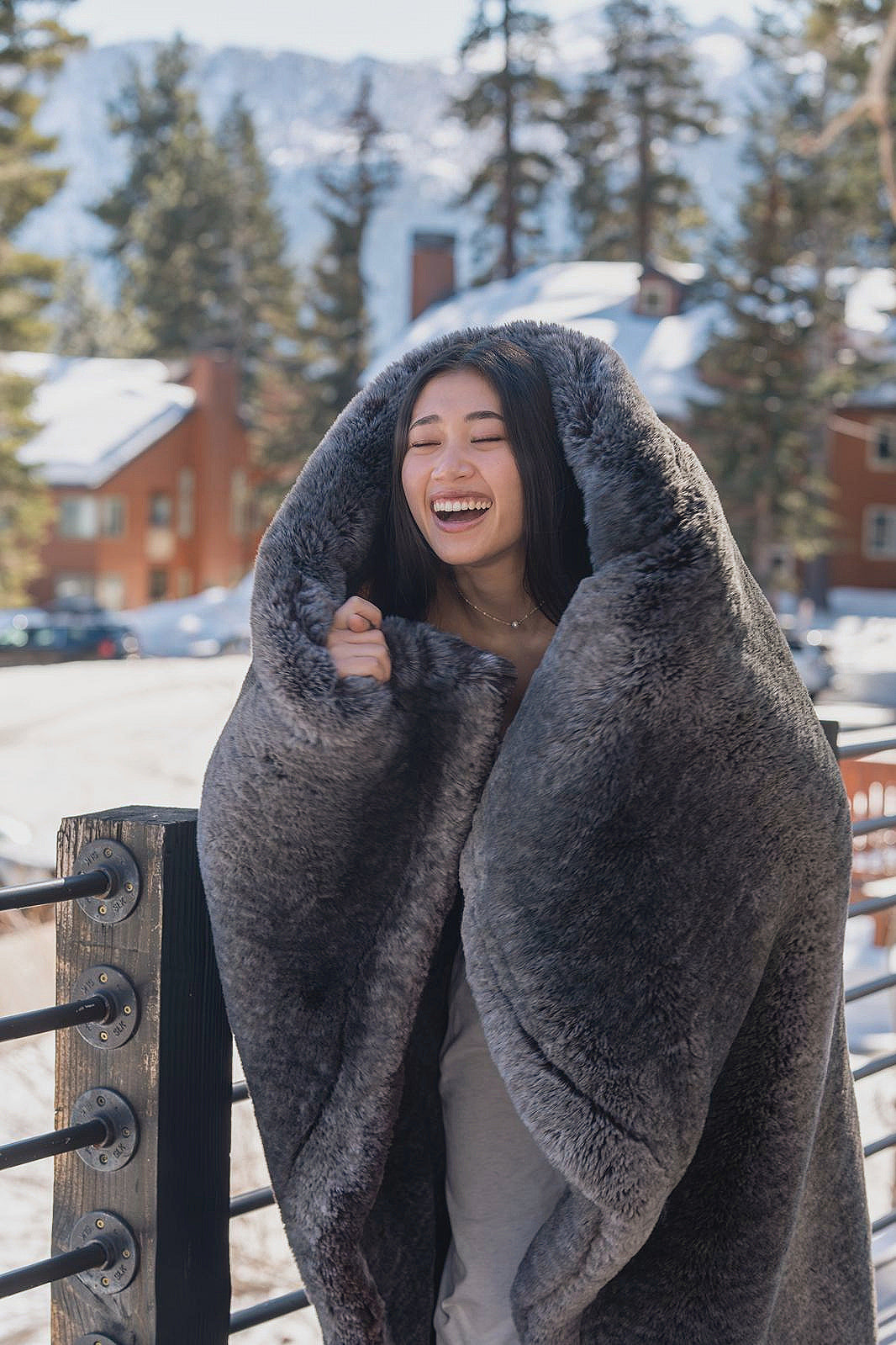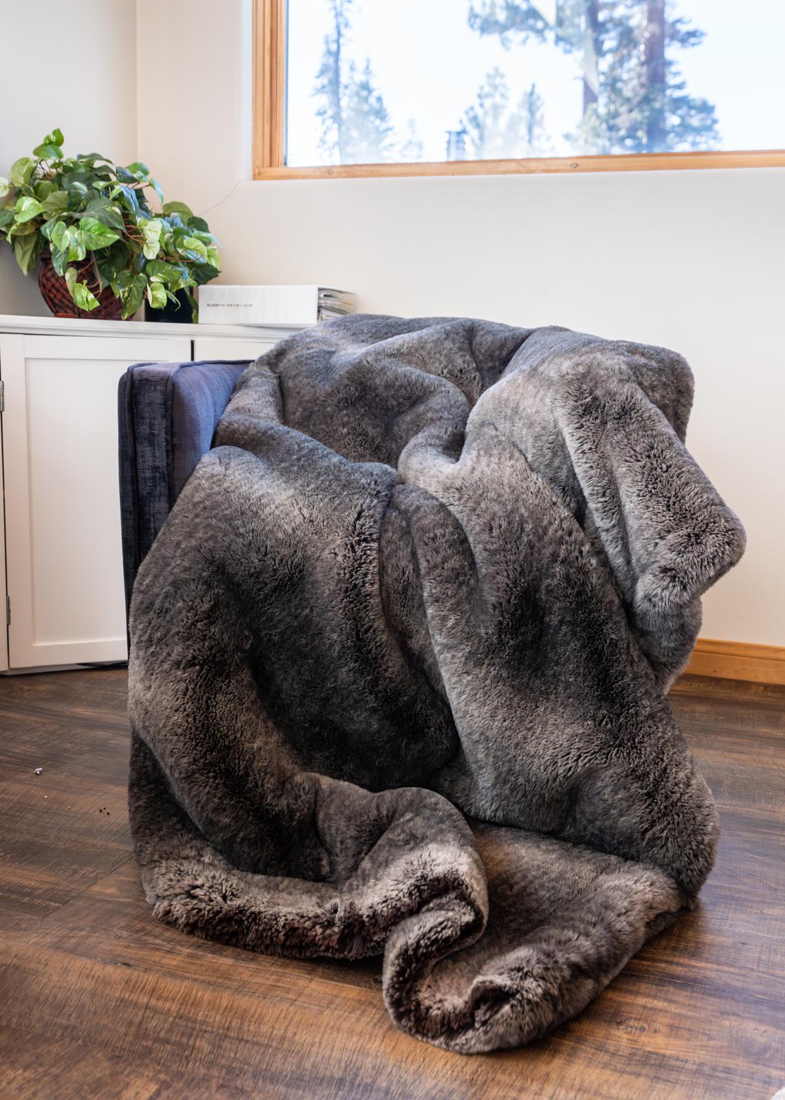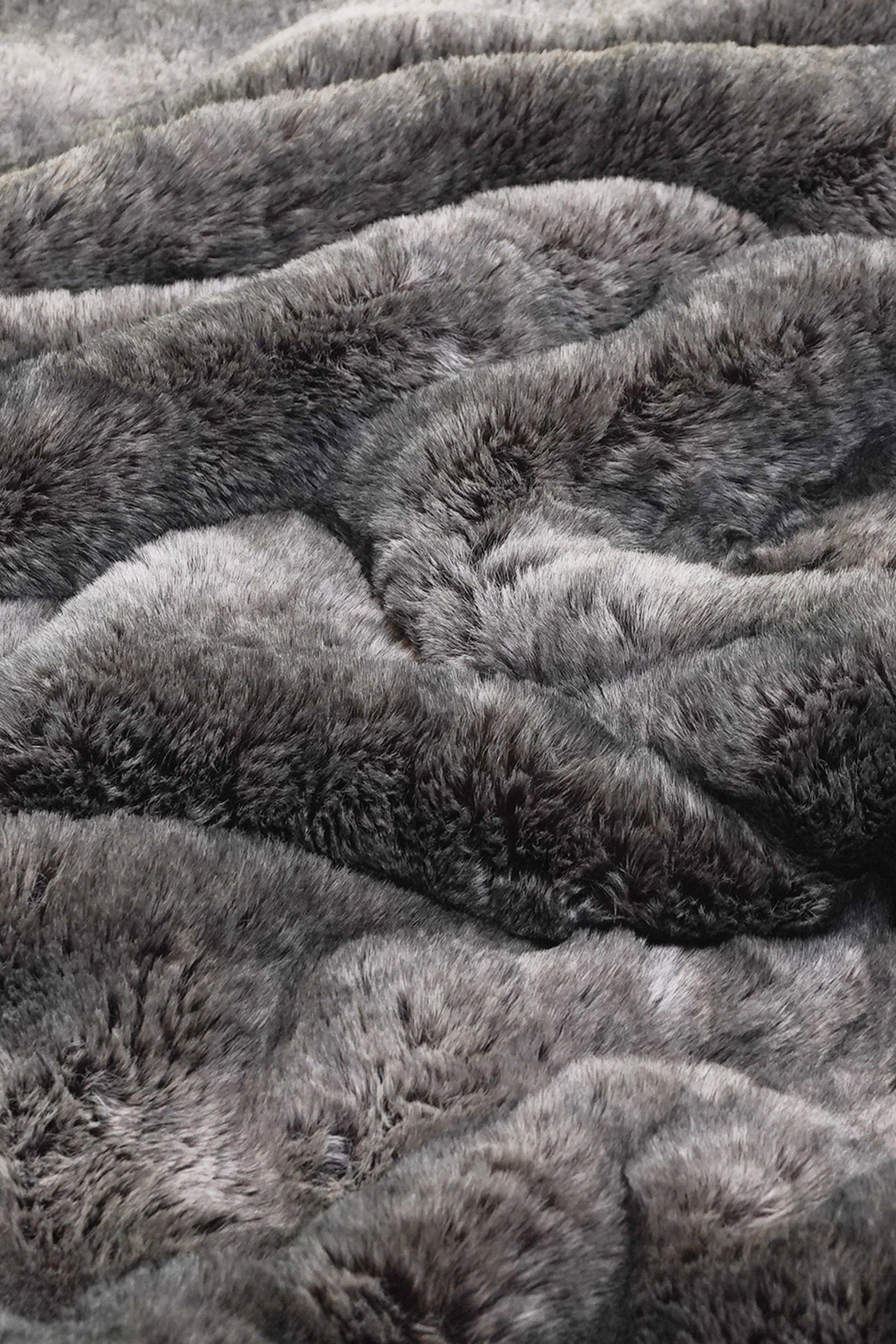 Alpine Abundance is an off-the-charts luxury masterpiece that redefines plushness and softness.  Inspired by the breathtaking beauty and grandeur of California’s Alpine mountains, this sumptuous blanket has a subtle palette of earthy grey tones and creamy whites, reminiscent of wintery snow-capped rocky mountain peaks.  Whether you’re curling up by the fireplace or lounging on a chilly winter morning, this extraordinary blanket will wrap you in the warmth and splendor of the Alpine mountains.