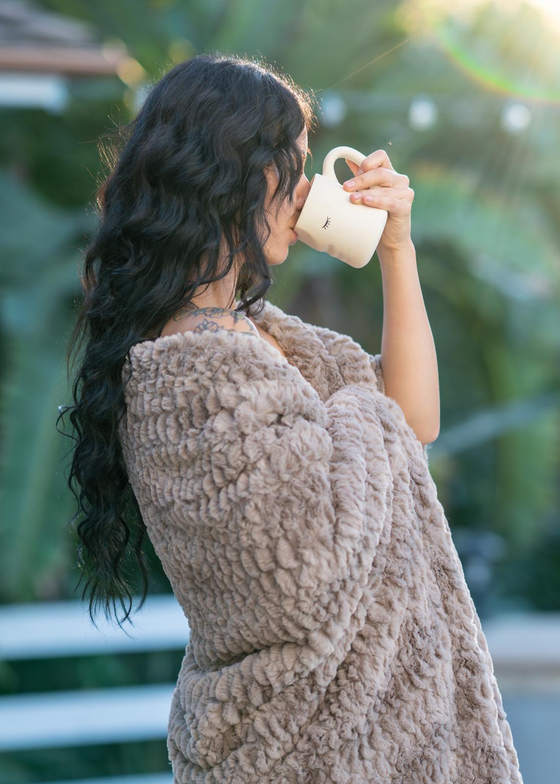 Napa Valley Nirvana is a rich and velvety blanket reminiscent of the rolling vineyards and lush landscapes of California’s renowned wine country.  Its unique texture adds depth and visual interest to its irresistible uber-soft plushness.  Wrap yourself and let the stresses of the day melt away, just like a warm sunset over the vineyards.